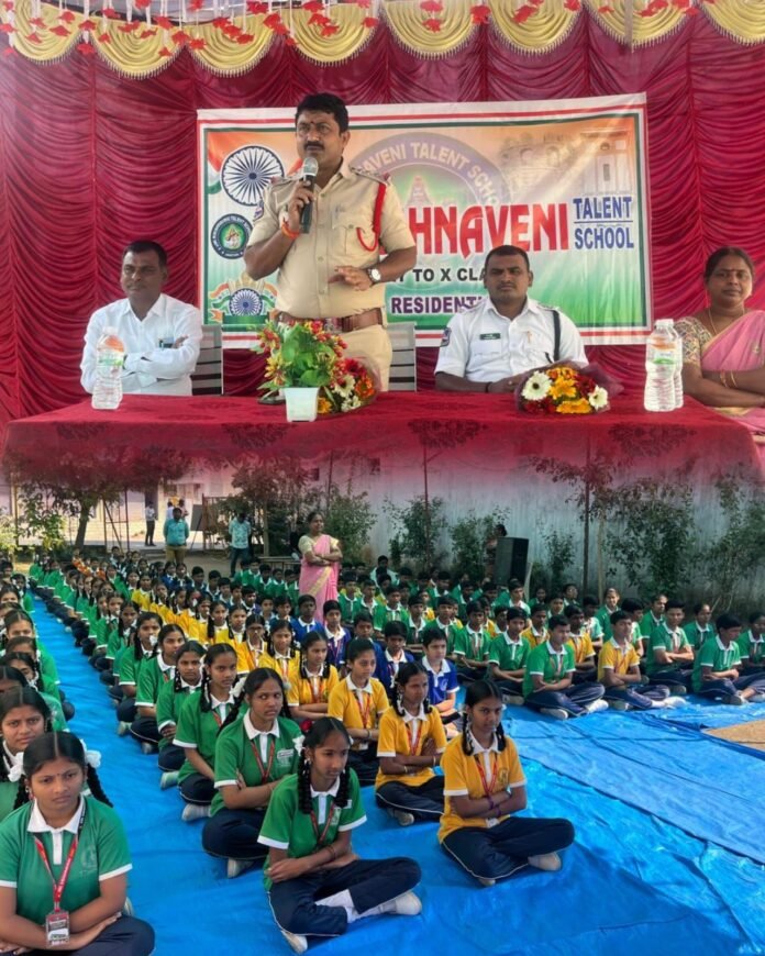 జగిత్యాల పట్టణంలోని బీట్ బజార్ ప్రాంతంలో ఉన్న శ్రీకృష్ణవేణి టాలెంట్ స్కూల్‌లో పోలీస్ శాఖ ఆధ్వర్యంలో రోడ్డు భద్రత నియమాలపై అవగాహన సదస్సు ఘనంగా నిర్వహించారు. ఈ కార్యక్రమంలో విద్యార్థులతో పాటు వారి తల్లిదండ్రులు పెద్ద సంఖ్యలో పాల్గొన్నారు.ఈ సందర్భంగా పట్టణ సీఐ కరుణాకర్ మాట్లాడుతూ, రోజురోజుకు పెరుగుతున్న రోడ్డు ప్రమాదాలను తగ్గించాలంటే ప్రతి ఒక్కరూ ట్రాఫిక్ నియమాలను కచ్చితంగా పాటించాల్సిన అవసరం ఉందన్నారు. వాహనాలు నడిపేటప్పుడు తప్పనిసరిగా సీట్‌బెల్ట్, హెల్మెట్ ధరించాలని, మద్యం సేవించి వాహనం నడపకూడదని, అతివేగం ప్రమాదాలకు దారితీస్తుందని హెచ్చరించారు. ట్రాఫిక్ సిగ్నల్స్‌ను గౌరవించడం ద్వారా ప్రమాదాలను నివారించవచ్చని స్పష్టం చేశారు.ట్రాఫిక్ ఎస్‌ఐ మల్లేశం మాట్లాడుతూ, విద్యార్థులు చిన్నతనంలోనే ట్రాఫిక్ నియమాలపై అవగాహన పెంచుకుంటే భవిష్యత్తులో బాధ్యతాయుతమైన పౌరులుగా ఎదుగుతారని అన్నారు. ట్రాఫిక్ సిగ్నల్స్ అర్థం, వాటి ప్రాముఖ్యతను వివరించారు. రాబోయే రోజుల్లో సమాజానికి ఆదర్శంగా నిలిచేలా ప్రవర్తించాలని విద్యార్థులకు సూచించారు. ఈ కార్యక్రమంలో పాఠశాల కరెస్పాండెంట్ రవీందర్ రెడ్డి, ప్రిన్సిపాల్ జ్యోతి, ఉపాధ్యాయులు ఫిరోజ్, జానకిరామ్‌తో పాటు పలువురు తల్లిదండ్రులు పాల్గొని కార్యక్రమాన్ని విజయవంతం చేశారు.రోడ్డు భద్రతపై ఇలాంటి అవగాహన కార్యక్రమాలు విద్యార్థుల జీవితాల్లో కీలక పాత్ర పోషిస్తాయని నిర్వాహకులు అభిప్రాయపడ్డారు.