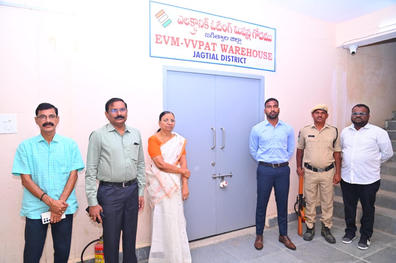 రాష్ట్ర ప్రధాన ఎన్నికల అధికారి ఆదేశాల మేరకు ప్రతినెల ఈవీఎం గోదాము తనిఖీ లో భాగంగా సోమవారం రోజున జిల్లా ఎన్నికల అధికారి జిల్లా కలెక్టర్ బి. సత్యప్రసాద్ దరూర్ క్యాంప్ లో గల గోదాములోని ఈవీఎంలను భద్రపరిచిన యంత్రాల భద్రత, సిసి కెమెరాల పనితీరు మరియు సాంకేతికపరమైన అంశాలను సమగ్రంగా పరిశీలించారు. గోదాము వద్ద ఎలాంటి లోపాలు లేకుండా పటిష్టమైన భద్రత ఉండాలని, నిత్యం అప్రమత్తతో పర్యవేక్షించాలని సిబ్బందికి సూచించారు.