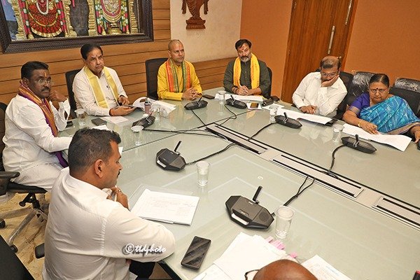 టిటిడిలో జరుగుతున్న పలు ఇంజనీరింగ్ పనులు వేగంగా పూర్తి చేయాలని టిటిడి ఛైర్మెన్ శ్రీ బీఆర్ నాయుడు అధికారులకు సూచించారు. టిటిడి పరిపాలనా భవనంలోని సమావేశ మందిరంలో టిటిడి ఈవో శ్రీ అనిల్ కుమార్ సింఘాల్ తో కలసి ఆయన సమీక్ష నిర్వహించారు.ఈ సందర్భంగా ఛైర్మెన్ బీఆర్ నాయుడు మాట్లాడుతూ అమరావతి వేంకటపాలెంలో ముఖ్యమంత్రి నారా చంద్రబాబు నాయుడు సూచనల మేరకు శ్రీ ఎస్వీ ఆలయ విస్తరణ పనులను వేగంగా పూర్తి చేయాలని అధికారులకు సూచించారు. అదేవిధంగా టిటిడి కల్యాణ మండపాలపై ఒక కమిటీని ఏర్పాటు చేసి వారు ఇచ్చే నివేదిక ఆధారంగా చర్యలు చేపట్టాలని సూచించారు. 5 వేల భజన మందిరాలను, నిర్మాణంలో ఉన్న ఆలయాలను, ఇటీవల కాలంలో అనుమతులు పొందిన ఆలయాలను సకాలంలో పూర్తి చేసేందుకు చర్యలు చేపట్టాలన్నారు.ఉపమాకలోని శ్రీ ఎస్వీ ఆలయం, కరీంనగర్ లోని శ్రీ పద్మావతీ ఆండాళ్ సమేత శ్రీ వేంకటేశ్వర స్వామి ఆలయం, అనంతవరం శ్రీ ఎస్వీ ఆలయం, కుప్పంలో నిర్మించనున్న 141 ఆలయాలు, నవీ ముంబైలోని శ్రీ ఎస్వీ ఆలయం, ముంబైలోని భాంద్రా, కర్నాటకలోని బెల్గావిలోని ఎస్వీ ఆలయం, కొండగట్టు అంజన్న ఆలయం పరిధిలో అభివృద్ధి పనులు, కాణిపాకంలోని పీఏసీ తదితర అభివృద్ధి పనులను సకాలంలో పూర్తి చేసేలా కార్యాచరణ రూపొందించాలన్నారు. అదేవిధంగా, ఒంటిమిట్టలోని శ్రీ కోదండరామ స్వామి ఆలయం సమీపంలో పలు అభివృద్ధి పనులు, 108 అడుగుల జాంబవంతుడు విగ్రహ ఏర్పాటు తదితర పనులతో పాటు టిటిడిలో జరుగుతున్న పనులను సకాలంలో, జరుగనున్న పనులకు పాలనాపరమైన అనుమతులు తీసుకుని పూర్తి చేయాలన్నారు. అలిపిరిలో భక్తుల సౌకర్యార్థం నిర్మించనున్న బేస్ క్యాంప్ కు డిజైన్ లను తయారు చేయాలన్నారు. అదేవిధంగా తిరుమల, తిరుపతిలో నిర్మాణంలో ఉ న్న ఇంజనీరింగ్ పనులను గడవులోపు పూర్తికి చర్యలు చేపట్టాలన్నారు.వచ్చే వేసవి సమయానికి భక్తులకు ఇబ్బంది లేకుండా వసతి సౌకర్యాం, క్యూలైన్లు, రహదారులు, తాగునీరు తదితర సౌకర్యాలపై ముందస్తుగా ప్రణాళికలు రూపొందించాలని సూచించారు. నిర్మాణాలకు సంబంధించి ఏదైనా పాలనాపరమైన సమస్యలు తలెత్తితే పాలక మండలి దృష్టికి తీసుకురావాలని సూచించారు.ఈ కార్యక్రమంలో టిటిడి పాలకమండలి సభ్యులు జి. భానుప్రకాష్ రెడ్డి, ఎం. శాంతారామ్. పనబాక లక్ష్మీ, ఎస్. నరేష్ కుమార్ పాల్గొనగా, నన్నపనేని సదాశివరావు వర్చువల్ ద్వారా, జేఈవో వి. వీరబ్రహ్మం, ఎఫ్ఎ అండ్ ఎస్ఏవో ఓ బాలాజీ, సీఈ టివి సత్యనారాయణ, ఎస్.ఈ మనోహరం, పలువురు ఇంజనీరింగ్ అధికారులు పాల్గొన్నారు.