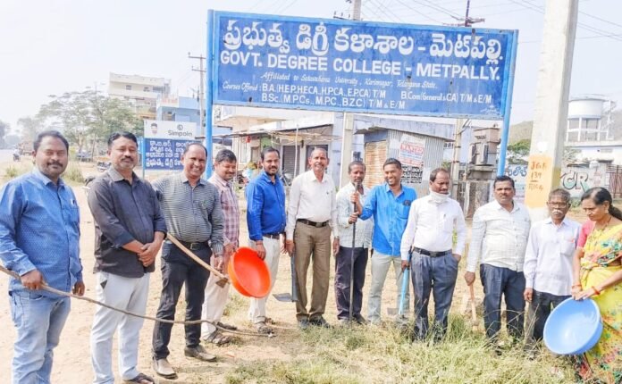 సోమవారం జరుగనున్న “రిపబ్లిక్ డే” ఉత్సవాల సందర్భంగా జగిత్యాల జిల్లా మెట్ పల్లి పట్టణంలోని ప్రభుత్వ డిగ్రీ కళాశాల ప్రిన్సిపాల్ డాక్టర్ కే. వేంకయ్య నేతృత్వంలో వైస్ ప్రిన్సిపాల్ తొంటి దేవన్న అధ్వర్యంలో శనివారం రోజున కళాశాల సిబ్బంది శ్రమదానం కార్యక్రమాన్ని నిర్వహించారు. ఈ సందర్భంగా జాతీయ రహదారిపై అమర్చిన కళాశాల బోర్డు నుంచి ప్రభుత్వ డిగ్రీ కళాశాల లోనికి వెళ్ళే రోడ్డుపై పెరిగిన గడ్డి, ముళ్ళ చెట్లు తదితర పిచ్చి మొక్కలతో పాటు చెత్త, చెదరాన్ని పారలు,గడ్డ పారలు,గొడ్డలి, ప్లాస్టిక్ బుట్టలు వంటి పరికరాల సహాయంతో శుభ్రం చేశారు.దాంతో ఈ ప్రాంతమంతా ఆకర్షణీయంగా తయారయ్యింది. అనంతరం చెత్త, చెదారానికి సిబ్బంది నిప్పంటించారు. ఈ కార్యక్రమంలో కళాశాల అకాడమిక్ కో- ఆర్డినేటర్ బిల్ల రాజేందర్, కామర్స్ హెచ్.ఓ. డి.మనోజ్ కుమార్ బోధనా సిబ్బంది అంజయ్య, శ్రీకాంత్, దశరథం లతో పాటు బోధనేతర సిబ్బంది లక్మినారాయణ, బాబు, శ్రీనివాస్, లక్ష్మి, లింగం తదితరులు పాల్గొన్నారు.