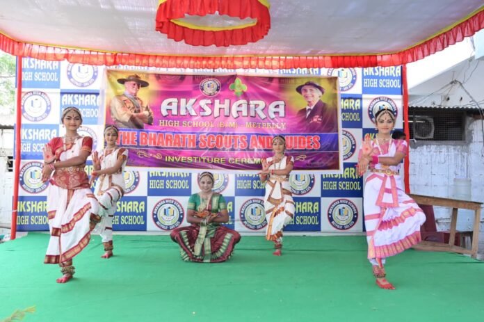 మెట్ పల్లి పట్టణంలోని అక్షర హైస్కూల్లో భారత స్కౌట్స్ అండ్ గైడ్స్ ద్వితీయ బ్యాచ్ ప్రారంభోత్సవ వేడుకలు ఘనంగా జరిగింది ఈ కార్యక్రమానికి ఏఎంసి చైర్మన్ కూనా గోవర్ధన్ మండల విద్యాధికారి మేకల చంద్రశేఖర్ ముఖ్య అతిథులుగా హాజరయ్యారు వారు మాట్లాడుతూవిద్యార్థులు క్రమశిక్షణ దేశభక్తి సంఘ సేవ మంచి అలవాట్లు నేర్చుకోవాలని ఇలాంటి ట్రైనింగు మూలాలు పెద్దలపట్ల గౌరవం ఉపాధ్యాయుల పట్ల గౌరవం నేర్పి పెంచుతుందని ఇటువంటి కార్యక్రమాల్లో ప్రతి ఒక్క విద్యార్థిని ట్రైనింగ్ చేయాలని అన్నారు ఈ కార్యక్రమంలో కరస్పాండెంట్ కొత్తూరి శ్రీనివాస్ ప్రిన్సిపాల్ గుండు ప్రవీణ్ ఉపాధ్యాయ బృందం డిస్ట్రిక్ట్ స్కౌట్ కమిషనర్ వినోద్ శిరీష తదితరులు పాల్గొన్నారు.