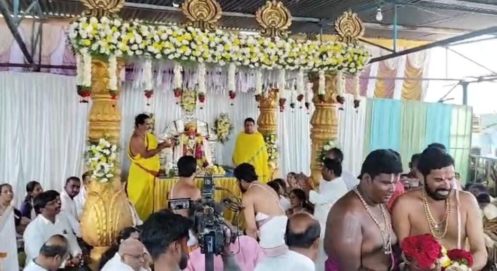 జగిత్యాల జిల్లా కొడిమ్యాల మండలంలోని నల్లగొండ ప్రాచీన శ్రీ లక్ష్మీనృసింహస్వామి స్వయంభూ ఆలయంలో జరుగుతున్న బ్రహ్మోత్సవాల్లో భాగంగా శుక్రవారం స్వామివారి కళ్యాణ మహోత్సవాన్ని అంగరంగ వైభవంగా నిర్వహించారు. ఈ కార్యక్రమం ఆలయ ప్రధాన అర్చకులు కంజర్ల శ్రీనివాసాచార్యుల ఆధ్వర్యంలో ఘనంగా సాగింది. ముందుగా ఆలయ పండితులు, అధికారులు స్వామివారిని ఆలయ బయటనున్న కమాన్ నుండి కళ్యాణ ప్రాంగణం వరకు ఉత్సాహభరితంగా ఎదుర్కొలు కార్యక్రమాన్ని నిర్వహించారు. అనంతరం కళ్యాణ వేదికపై భక్తుల గోవింద నామస్మరణల నడుమ అర్చక పండితులు స్వామివారి కళ్యాణాన్ని కనుల పండుగగా జరిపించారు. ఈ వేడుకను తిలకించేందుకు భారీ సంఖ్యలో భక్తులు హాజరయ్యారు. కళ్యాణోత్సవంలో భాగంగా మాలధారణ,పూబంతులాట వంటి కార్యక్రమాలు భక్తులను విశేషంగా ఆకట్టుకున్నాయి. ఈ సందర్భంగా ప్రధాన అర్చకులు శ్రీనివాసాచార్యులు మాట్లాడుతూ, బ్రహ్మోత్సవాల విశిష్టతను వివరిస్తూ పౌర్ణమి రోజైన ఆదివారం సాయంత్రం నాలుగు గంటలకు స్వామివారి రథోత్సవాన్ని నిర్వహించనున్నట్లు తెలిపారు.భక్తులు అధిక సంఖ్యలో పాల్గొనాలని ఆయన కోరారు.కళ్యాణ మహోత్సవంలో స్థానిక ఎమ్మెల్యే మేడిపల్లి సత్యం స్వామివారిని దర్శించుకున్నారు. అలాగే నాయకులు ఊట్కూరి నరేందర్ రెడ్డి, నాయకురాలు దండు రాజేశ్వరి కూడా స్వామివారిని దర్శించుకున్నారు. బ్రహ్మోత్సవాలకు హాజరయ్యే భక్తుల కోసం అన్ని సౌకర్యాలు ఏర్పాటు చేసినట్లు ఆలయ ఈవో ఉడుత వెంకన్న తెలిపారు. ఈ కార్యక్రమంలో దేవాదాయ ధర్మాదాయ శాఖ అధికారులు, అర్చక పండితులు, ఆలయ సిబ్బంది, పెద్ద సంఖ్యలో భక్తులు పరిసర గ్రామాల ప్రజలు పాల్గొన్నారు.