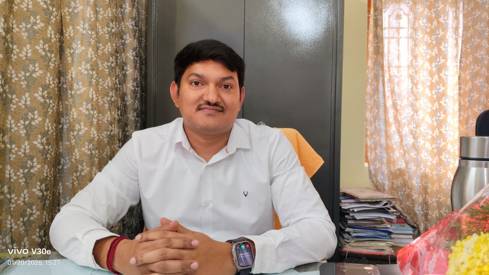 గ్రూప్ 1 ఫలితాలలో 36వ ర్యాంక్ సాధించిన వరంగల్ కు చెందిన బి మాధవ్ మంగళవారం డిస్టిక్ రిజిస్టర్ శిక్షణలో భాగంగా వైరాలో సబ్ రిజిస్ట్రార్ కార్యాలయం నందు శిక్షణ సబ్ రిజిస్ట్రార్ గా బాధ్యతలు చేపట్టారు. ఈ సందర్భంగా కార్యాలయం సిబ్బంది మాధవ్ కు పుష్పగుచ్చం అందించి స్వాగతం పలికారు. వరంగల్ కు చెందిన బి మాధవ్ ఎస్సార్ యూనివర్సిటీలో మెకానికల్ ఇంజనీరింగ్ పూర్తి చేసిన మాధవ్ 2019లో సబ్ ఇన్స్పెక్టర్ గా ఉద్యోగం పొంది 2025 వరకు విధులు నిర్వహించారు. మాధవ్ తండ్రి పోస్ట్ మాన్ గా విధులు నిర్వహిస్తున్నారు. విద్యాభ్యాసంలో అత్యధిక మార్కులు సాధించుకుంటూ ర్యాంకులు సాధించిన మాధవ్ వరసగా 8 ప్రభుత్వ ఉద్యోగాలు సాధించాడు. 2018లో విఆర్ఓ, గ్రూప్ ఫోర్ లో 37వ ర్యాంక్, సివిల్ ఎస్సై ,రైల్వే ఎస్సై, ఫారెస్ట్ బీట్ ఆఫీసర్ ,అసిస్టెంట్ కమాండెంట్, రైల్వే ఇంజనీర్ ఇలా ఉద్యోగాలు వరుసగా సంపాదించిన మాధవ్ గ్రూప్ 1 లో 36వ ర్యాంకు సాధించి ఉమ్మడి ఖమ్మం జిల్లా డిస్టిక్ రిజిస్ట్రార్ శిక్షణ లో భాగంగా వచ్చిన బి మాధవ్ వైరా సబ్ రిజిస్టర్ కార్యాలయం నందు శిక్షణ సబ్ రిజిస్టర్ గా బాధ్యతలు చేపట్టారు