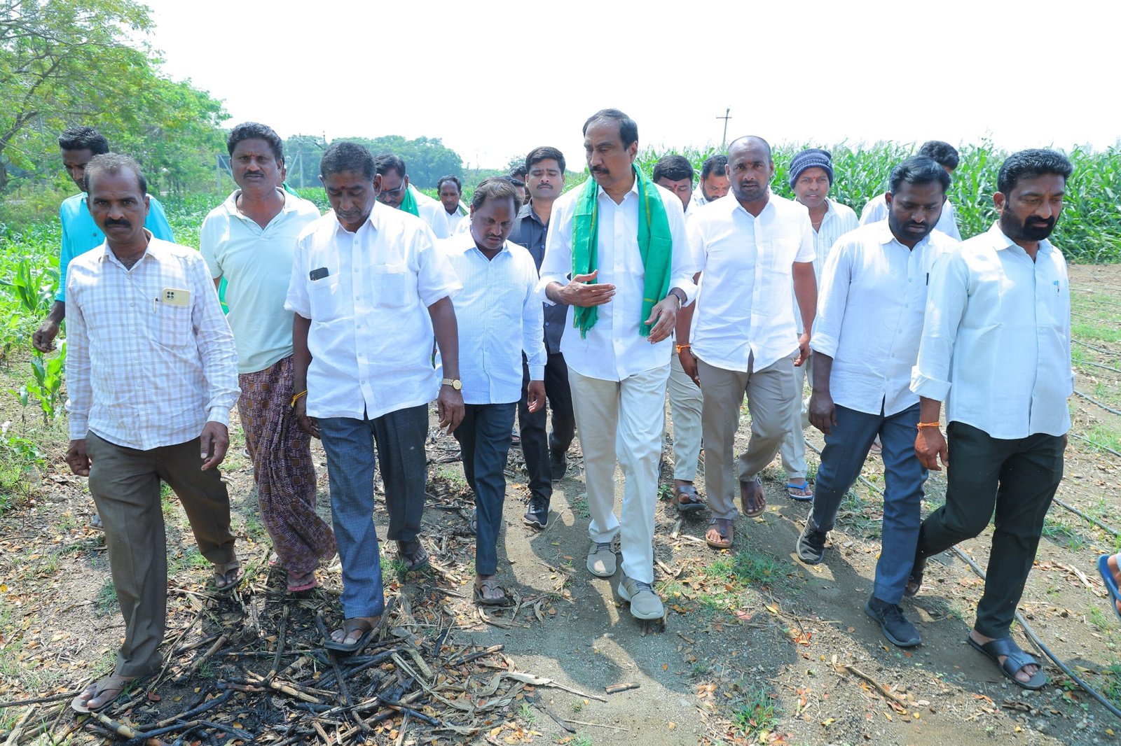 జగిత్యాల జిల్లా రాయికల్ మండల రామాజీ పెట్ గ్రామంలో ఇటీవల కురిసిన అకాల వర్షాలకు దెబ్బతిన్న మొక్కజొన్న పంటలను జగిత్యాల ఎమ్మెల్యే డా సంజయ్ కుమార్ పరిశీలించారు. ఈ సందర్భంగా ఎమ్మెల్యే మాట్లాడుతూ రైతులు అధైర్య పడవద్దు అని, అకాల వర్షాలకు 650 ఎకరాలలో పంట నష్టం జరిగిన వెంటనే జిల్లా,మండల స్థాయి వ్యవసాయ అధికారులు,రెవెన్యూ అధికారుల తో రైతులతో మాట్లాడడం జరిగింది అని,పంట నష్టాన్ని అంచనా వేయటం జరిగింది అని,ముఖ్యమంత్రి తో మాట్లాడడం జరిగింది అని,రైతులు నష్ట పరిహారం అందించే విధంగా కృషి చేస్తానని అన్నారు.