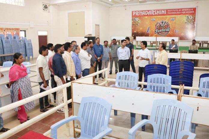 పెద్దతండాలోని ప్రియదర్శని కళాశాలలో ఏర్పాటు చేసిన ఏదులాపురం మున్సిపల్ ఎన్నికల డిస్ట్రిబ్యూషన్, రిసెప్షన్, కౌంటింగ్ కేంద్రాలను ఖమ్మం జిల్లా కలెక్టర్ అనుదీప్ దురిశెట్టి సోమవారం తనిఖీ చేశారు. స్ట్రాంగ్ రూం, ఓట్ల లెక్కింపు కు టెబుల్స్ ఏర్పాట్ల లను కలెక్టర్ తిరుగుతూ క్షుణ్ణంగా పరిశీలించారు. ఫిబ్రవరి 10న ఎన్నికల సిబ్బందికి అందించే సామాగ్రి పంపిణీకి ముందస్తు ప్రక్రియ పోలింగ్ సామాగ్రిని, పోస్టల్ బ్యాలెట్ పత్రాలు, బ్యాలెట్ బాక్స్, ఓటర్ లిస్ట్, బ్యాలెట్ పేపర్స్, పూర్తి సామాగ్రి సరిచూసుకోవడం పై అధికారులకు కలెక్టర్ దిశానిర్దేశం చేశారు. పోలింగ్ రోజున ఉదయమే సిబ్బంది పోలింగ్ స్టేషన్ వద్దకు చేరుకునేలా విధంగా వాహనాల ఏర్పాట్లుతో రూట్ ఆఫీసర్లు భాద్యత వహించాలని, ఎన్నికల సామాగ్రి పంపిణీ నిర్ణీత సమయానికి పూర్తయ్యేలా తగిన చర్యలు తీసుకుంటూ, సమయానికి అనుగుణంగా సిబ్బందికి భోజనం ఏర్పాట్లు చేయాలని అధికారులను కలెక్టర్ ఆదేశించారు.