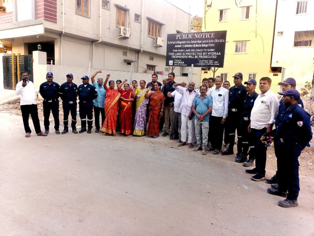 దీనిపై కమిషనర్ తక్షణమే స్పందించారు. సంబంధిత పత్రాలను క్షుణ్ణంగా పరిశీలించి, అది పార్కు స్థలమేనని ధ్రువీకరించారు. వెంటనే హైడ్రా సిబ్బందిని రంగంలోకి దించి, కాలనీవాసుల సమక్షంలోనే ఆ స్థలం చుట్టూ ఫెన్సింగ్ ఏర్పాటు చేయించారు. ఈ భూమిని ఎవరైనా ఆక్రమించడానికి ప్రయత్నిస్తే కఠినమైన చట్టపరమైన చర్యలు తీసుకుంటామని హెచ్చరికలు జారీ చేశారు. సుదీర్ఘ పోరాటం తర్వాత పార్కు స్థలం దక్కడంతో కాలనీవాసులు హర్షం వ్యక్తం చేశారు. కాలనీ ప్రెసిడెంట్ సాగర్ రెడ్డి, ఇతర సభ్యులు హైడ్రా కమిషనర్కు ప్రత్యేక కృతజ్ఞతలు తెలిపారు. ప్రజా ఆస్తుల పరిరక్షణలో హైడ్రా చూపిస్తున్న చొరవ అభినందనీయమని టెంపుల్ ప్రెసిడెంట్ డి. యాదగిరి యాదవ్ కొనియాడారు. ఈ కార్యక్రమంలో కాలనీ సలహాదారులు జి. అరుణ్ రెడ్డి, టెంపుల్ జనరల్ సెక్రటరీ జె. నందం గౌడ్, వేణుగోపాల్ రావు సొసైటీ సభ్యులు యస్.వి సాగర్ రెడ్డి, డి.యాదగిరి యాదవ్, జి.అరుణ రెడ్డి, జె. నందం గౌడ్, కె.కోమరయ్య యాదవ్, వేణుగోపాల్ ,శంకర్ చారీ, హరిబాబు తదితరులు పాల్గొన్నారు