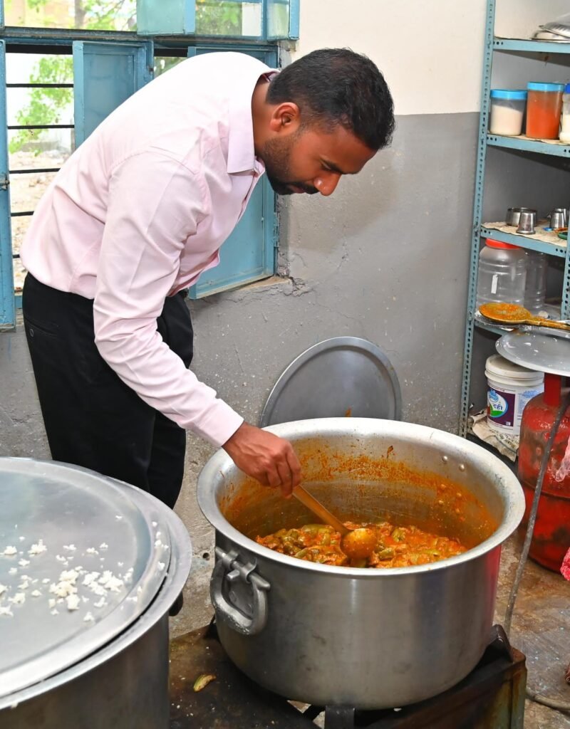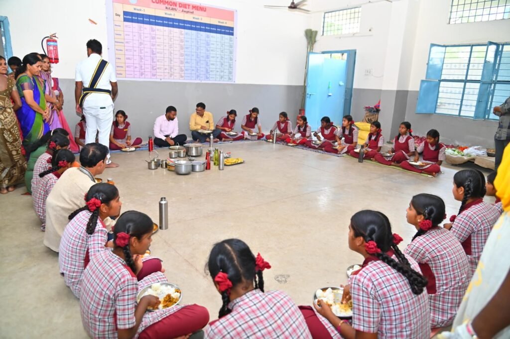 పిఎం పోషణ్’ తనిఖీ లో భాగంగా శుక్రవారం జిల్లా కలెక్టర్ బి. సత్య ప్రసాద్ జగిత్యాల పట్టణంలోని కస్తూర్బా గాంధీ (బాలికల) విద్యాలయం (కేజీబీవీ) ను ఆకస్మికంగా సందర్శించారు.ఈ సందర్భంగా మధ్యాహ్నం భోజనంలో విద్యార్థులకు అందిస్తున్న కామన్ మెనూ ప్రకారం వండుతున్న ఆహారాన్ని పరిశీలించారు. వంటగది పరిశుభ్రత, ఆహార నాణ్యత, నిల్వ విధానాలు తదితర అంశాలను సమీక్షించారు. స్టోర్ రూమ్‌లో ఉన్న బియ్యం, పప్పులు, కూరగాయలు మరియు ఇతర సరుకుల సామగ్రిని తనిఖీ చేసి రికార్డులను పరిశీలించారు.