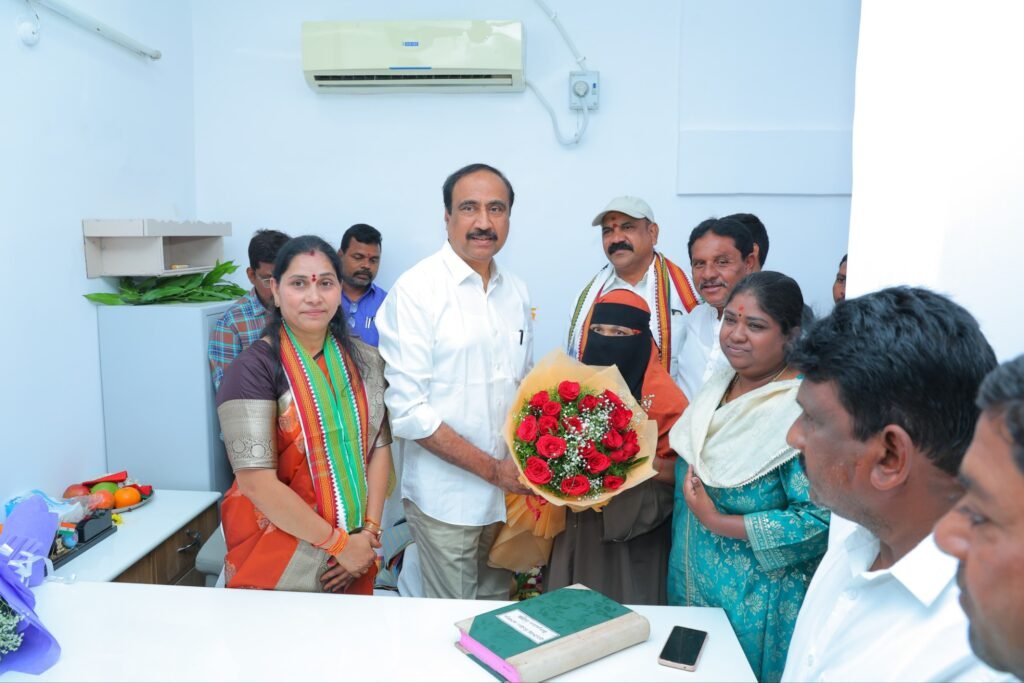 జగిత్యాల పట్టణ మున్సిపాలిటీ నూతన చైర్పర్సన్గా సమీండ్ల వాణి శ్రీనివాస్ అధికారికంగా పదవి బాధ్యతలు స్వీకరించారు. ఈ సందర్భంగా మున్సిపల్ కార్యాలయంలో నిర్వహించిన బాధ్యతల స్వీకరణ కార్యక్రమానికి ఎమ్మెల్యే డా. సంజయ్ కుమార్ ముఖ్య అతిథిగా హాజరై నూతన చైర్పర్సన్కు శుభాకాంక్షలు తెలిపారు.మున్సిపల్ కమిషనర్ స్పందన ఆధ్వర్యంలో జరిగిన ఈ కార్యక్రమంలో సమీండ్ల వాణి శ్రీనివాస్ అధికారికంగా బాధ్యతలు చేపట్టారు. పట్టణ అభివృద్ధి, మౌలిక సదుపాయాల విస్తరణ, ప్రజల సమస్యల పరిష్కారానికి కృషి చేస్తామని ఈ సందర్భంగా ఆమె పేర్కొన్నారు.