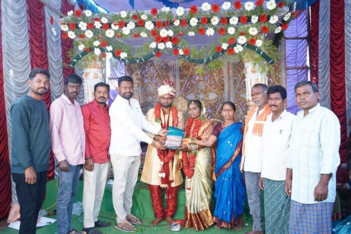 జగిత్యాల జిల్లా మల్లాపూర్ మండలం వాల్గొండ గ్రామంలో శ్రీ రామలింగేశ్వర త్రికూట ఆలయ కమిటీ చైర్మన్ పందిరి నాగరాజు వినూత్నంగా ఆలోచించి ఆడబిడ్డ కుటుంబాలకు అసరా అవుతున్నారు. వివరాల్లోకి వెళితే వాల్గొండ గ్రామంలో పళ్ళికొండ గంగరాజాం – రాజు రెండవ కుమార్తె తులసి అనే పెళ్లి కూతురికి కళ్యాణ కానుక గా పట్టు చీరను అందజేశారు. అనంతరం ఆయన మాట్లాడుతూ ఇప్పటి నుండి వాల్గొండ గ్రామములో ఏ ఆడపడుచు వివాహము జరిగిన ఆడపడుచు కు కళ్యాణ కానుకగా తన వంతు పట్టుచీరను బహుమతిగా తాను దేవాలయ కమిటీ చైర్మన్ గా ఉన్నన్ని రోజులు అందజేస్తానని తెలిపారు. గ్రామంలో కుల మత భేదాలు లేకుండా ప్రతి ఆడపడుచుకు ఈ కళ్యాణ కానుకను అందజేస్తామని తెలిపారు. ఈ కార్యక్రమంలో ఆడపడుచు తల్లిదండ్రులు, గ్రామ ప్రజలు మరియు తదితరులు పాల్గొన్నారు