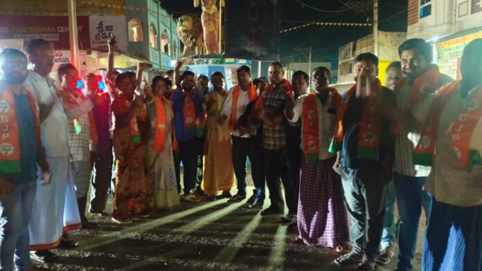మున్సిపల్ ఎన్నికల ఫలితాల్లో జగిత్యాల జిల్లా వ్యాప్తంగా బిజెపి పార్టీ అభ్యర్థులు గెలుపు పై మల్లాపూర్ మండల బిజెపి అధ్యక్షులు గోపిడి శ్రీనివాస్ రెడ్డి ఆధ్వర్యంలో సంబరాలు జరుపుకున్నారు. ఈ సందర్భంగా మండల కేంద్రంలోని భరతమాత కుడలి వద్ద టపాకాయలు పేల్చి సంబరాలు జరుపుకొని స్వీట్లు పంపిణీ చేశారు. మెట్ పల్లి, కోరుట్ల ,రాయికల్ ఫలితాల్లో బిజెపి ముందంజలో ఉండడం ఎంతో సంతోషదాయకమని మున్సిపల్ ఎన్నికల ఫలితాలతో బిజెపి శ్రేణుల్లో రెట్టింపు ఉత్సాహం చేకూరిందని అన్నారు. ఈ కార్యక్రమంలో జిల్లా ఉపాధ్యక్షురాలు ఎర్ర లక్ష్మి, మండల ఉపాధ్యక్షుడు లవంగ శివ, మండల మహిళా అధ్యక్షురాలు సత్తమ్మ, గ్రామ శాఖ అధ్యక్షుడు ముష్కరి రాజు కుమార్, నాయకులు గంగారాజం, మనోజ్, జలపతి, శేఖర్, బిజెపి నాయకులు కార్యకర్తలు ఉన్నారు
