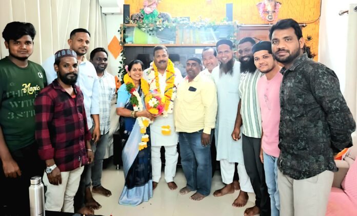 జగిత్యాల జిల్లా మెట్ పల్లి పట్టణంలో 18వ వార్డు కౌన్సిలర్ గా గెలుపొందిన చెట్లపల్లి మీనా సుఖేందర్ గౌడ్ లను స్థానిక ముస్లిం పుర యూత్, మార్వెల్ యూత్ సభ్యులు ఘనంగా సన్మానించారు. పూలమాలలు శాలువాలతో సత్కరించారు. వార్డును అన్ని రంగాల్లో అభివృద్ధి చేయాలని కోరారు. ఈ కార్యక్రమంలో యూత్ సభ్యులు తదితరులు పాల్గొన్నారు.
