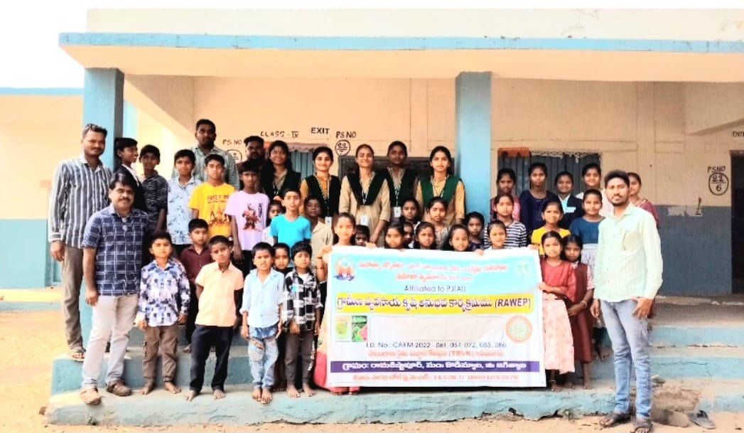 కొడిమ్యాల మండలం రామకిష్టాపూర్ గ్రామంలో శనివారం రైతులు పంట మార్పిడి విధానం పాటించడంతో పాటు సంప్రదాయ ఎరువులను వినియోగించి పర్యావరణాన్ని సంరక్షించాలని సూచిస్తూ రైతు అవగాహన కార్యక్రమం నిర్వహించారు. ప్రొఫెసర్ జయశంకర్ తెలంగాణ స్టేట్ అగ్రికల్చరల్ యూనివర్సిటీ , కరీంనగర్కు చెందిన వ్యవసాయ కళాశాల విద్యార్థులు గ్రామీణ వ్యవసాయ అనుభవ కార్యక్రమంలో భాగంగా పీఆర్ఏ (పార్టిసిపేటరీ రూరల్ అప్రైసల్ ) కార్యక్రమాన్ని చేపట్టారు.ఈ సందర్భంగా సామాజిక పటం, వనరుల పటం, సమస్యల చెట్టు, సంపద ర్యాంకింగ్, గ్రామ జనాభా పటం వంటి పద్ధతుల ద్వారా గ్రామ పరిస్థితులను విశ్లేషించి రైతులకు పంటల వైవిధ్యీకరణ, మట్టి సంరక్షణ, సేంద్రియ ఎరువుల వినియోగం వంటి అంశాలపై అవగాహన కల్పించారు.కార్యక్రమంలో గ్రామ సర్పంచ్ నేరెల మహేష్, కేర్టేకర్ బాపురెడ్డి, రాఘవరెడ్డి, రైతులు, పాఠశాల ప్రధానోపాధ్యాయులు, ఉపాధ్యాయులు పాల్గొన్నారు. కళాశాల విద్యార్థినులు కె. రక్షిత, ఎం. నందిని, ఎం. భవాని, పూజిత, వైష్ణవి తదితరులు కార్యక్రమంలో చురుకుగా పాల్గొని రైతులతో ప్రత్యక్షంగా చర్చించారు.ఇటువంటి కార్యక్రమాలు రైతులకు శాస్త్రీయ పద్ధతులపై అవగాహన పెంచి, స్థిరమైన వ్యవసాయానికి దోహదపడతాయని నిర్వాహకులు తెలిపారు.