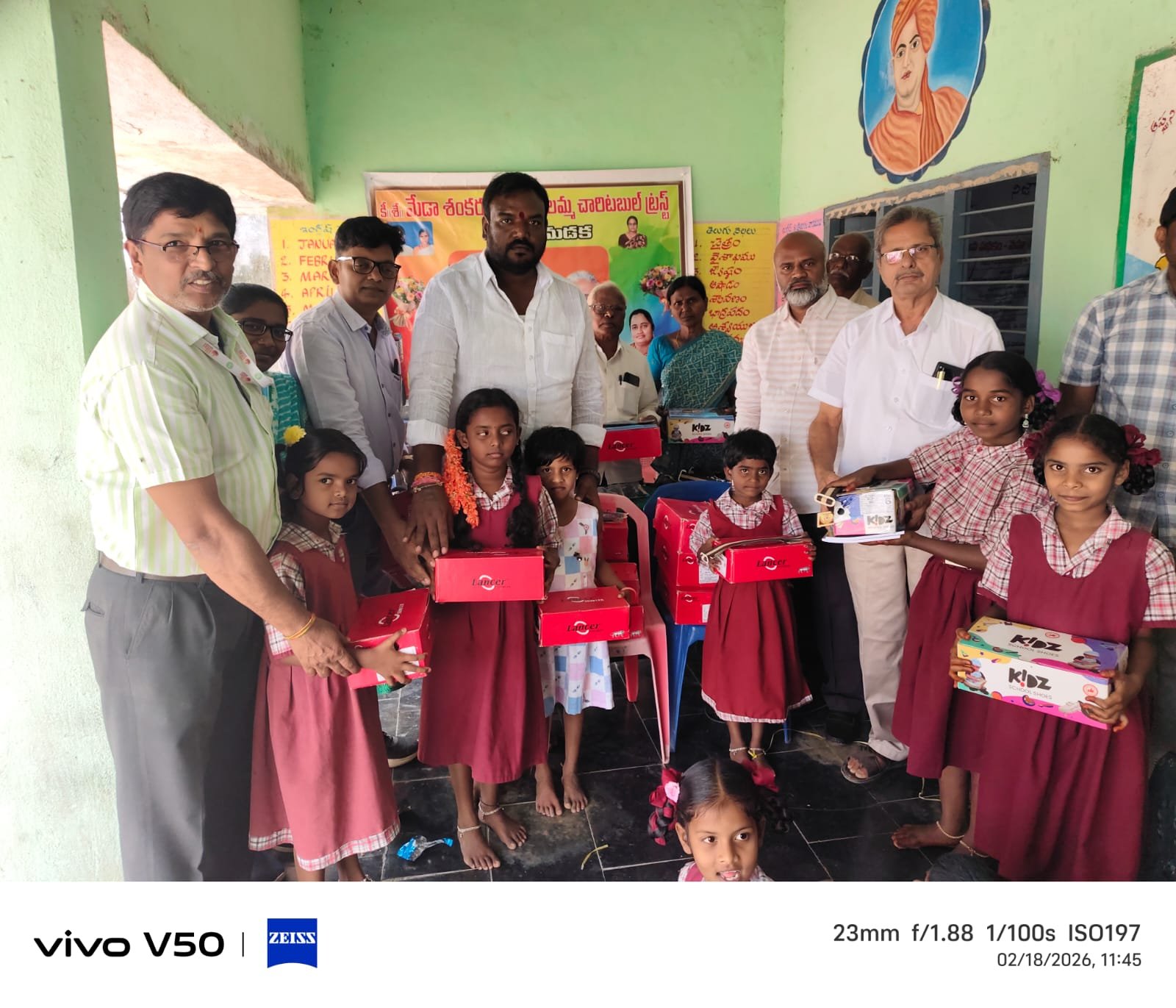 విద్యతోనే సమాజాభివృద్ధి సాధ్యమవుతుందని వైరా మున్సిపాలిటీ వైస్ చైర్మన్ కట్ల సంతోష్ అన్నారు. వైరా మండలంలోని విప్పలమడక గ్రామంలో ప్రాథమికోన్నత పాఠశాల, ప్రాథమిక పాఠశాల విద్యార్థులకు మేడా శంకరయ్య – సుశీలమ్మ చారిటబుల్ ట్రస్ట్ ఆధ్వర్యంలో బుధవారం సుమారు రూ. 15 వేల విలువ గల షూలు, సాక్సులు, బెల్ట్లు, టై లు, నోటు పుస్తకాలను పంపిణీ చేశారు. ఈ కార్యక్రమానికి వైరా మున్సిపాలిటీ వైస్ చైర్మన్ కట్ల సంతోష్, ఎంఈఓ కొత్తపల్లి వెంకటేశ్వర్లు, న్యూ లిటిల్ ఫ్లవర్ పాఠశాల కరస్పాండెంట్ డాక్టర్ పోతినేని భూమేశ్వరరావు ముఖ్యఅతిథిగా హాజరై విద్యార్థులకు వాటిని అంద చేశారు. అనంతరం కట్ల సంతోష్ మాట్లాడుతూ విప్పలమడక గ్రామానికి తమ కుటుంబానికి 30 ఏళ్లగా అవినాభావ సంబంధం ఉందని చెప్పారు. తమ వ్యాపార కార్యకలాపాలకు విప్పలమడక గ్రామం కీలకంగా ఉండేదని పేర్కొన్నారు. మేడా శంకరయ్య – సుశీలమ్మ చారిటబుల్ ట్రస్ట్ సేవలో ప్రశంసనీయమని కొనియాడారు. విప్పలమడక గ్రామాభివృద్ధికి తన వంతు సహాయ సహకారాలు అందిస్తానని స్పష్టం చేశారు. గత సర్పంచ్ ఎన్నికల్లో మంచి పాలకవర్గాన్ని ఎన్నుకోవడంతోనే విప్పలమడక గ్రామ అభివృద్ధి సాధ్యమవుతుందని పేర్కొన్నారు. ఎంఈఓ కొత్తపల్లి వెంకటేశ్వర్లు మాట్లాడుతూ రెండు నెలల కాలంలోనే మేడా శంకరయ్య – సుశీలమ్మ చారిటబుల్ ట్రస్ట్ విప్పలమడక గ్రామంలో అనేక సేవా కార్యక్రమాలు నిర్వహిస్తూ ఆదర్శంగా నిలుస్తుందన్నారు.న్యూ లిటిల్ ఫ్లవర్ పాఠశాల కరస్పాండెంట్ డాక్టర్ పోతినేని భువనేశ్వరరావు మాట్లాడుతూ మేడా శంకరయ్య – సుశీలమ్మ చారిటబుల్ ట్రస్ట్ స్ఫూర్తితో తన తల్లి పేరుతో పోతినేని సరోజని చారిటబుల్ ట్రస్ట్ ను ఏర్పాటు చేస్తున్నామని స్పష్టం చేశారు. ఈ నూతన ట్రస్ట్ ఆధ్వర్యంలో విప్పలమాడక గ్రామ అభివృద్ధికి కృషి చేస్తానని హామీ ఇచ్చారు. ఈ కార్యక్రమంలో గ్రామ ఉప సర్పంచ్ బూర్గులూర్థమ్మ, మాజీ సర్పంచులు పారుపల్లి కృష్ణారావు, తుమ్మల జాన్ పాపయ్య, మాజీ ఎంపీటీసీ ఆకుల ప్రసాద్, గ్రామ కార్యదర్శి కాంపల్లి ధనమ్మ, కాంప్లెక్స్ ప్రధాన ఉపాధ్యాయుడు దొంతెబోయిన సత్యనారాయణ, వార్డు సభ్యులు ముత్తమాల నాగజ్యోతి, పారుపల్లి నిఖిత, గరిడేపల్లి శ్రీనివాసరావు, కాశీ మాల సామేలు, బూర్గునందిని తదితరులు పాల్గొన్నారు.