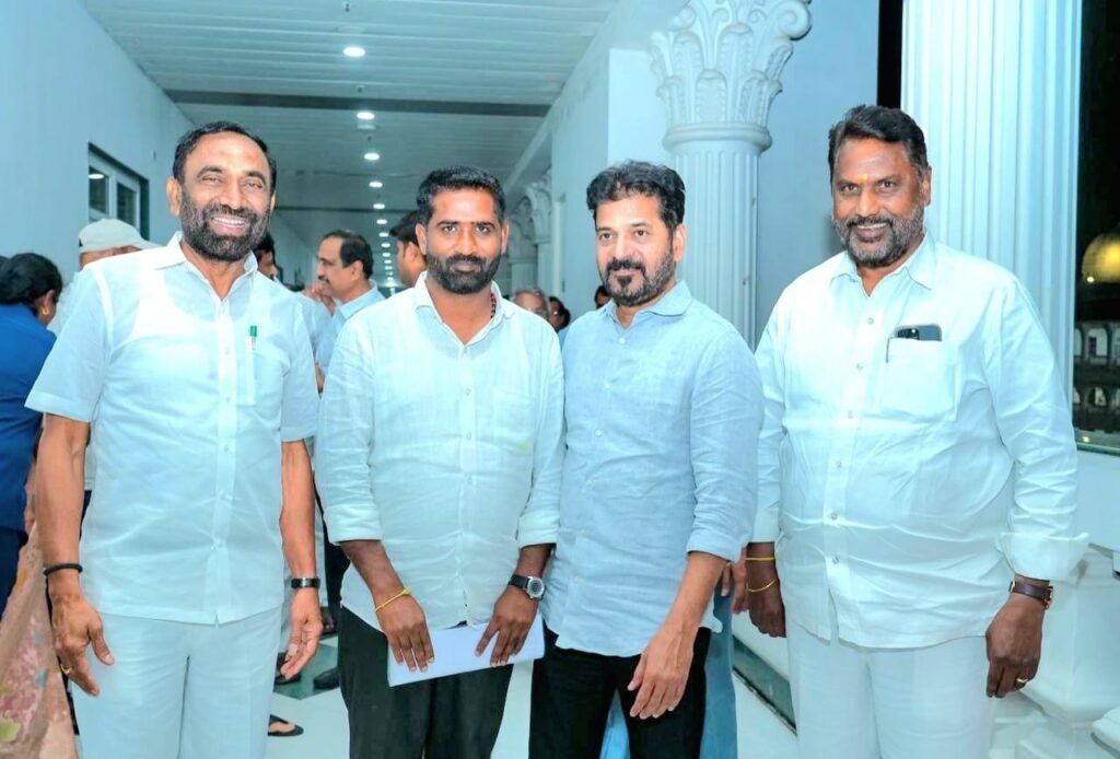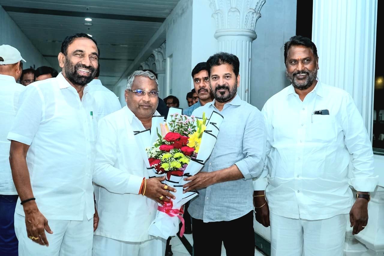 తెలంగాణ రాష్ట్ర ముఖ్యమంత్రి ఎనుముల రేవంత్ రెడ్డిని సోమవారం మెట్ పల్లి మున్సిపల్ చైర్మన్ మైలారపు లింబాద్రి, వైస్ ఛైర్మన్ ఓంకారి నవీన్ కుమార్ లు మర్యాదపూర్వకంగా కలిశారు. ఇటీవల జరిగిన మున్సిపల్ సాధారణ ఎన్నికల్లో మెట్ పల్లి మున్సిపల్ చైర్మన్ గా మైలారపు లింబాద్రి, వైస్ ఛైర్మన్ గా ఓంకారి నవీన్ కుమార్ గెలుపొందగా మంత్రి అడ్లూరి లక్ష్మణ్ కుమార్, కాంగ్రెస్ పార్టీ కోరుట్ల నియోజకవర్గ ఇంచార్జీ జువ్వాడి నర్సింగరావులతో కలిసి మర్యాదపూర్వకంగా సీఎం రేవంత్ రెడ్డిని కలిశారు.