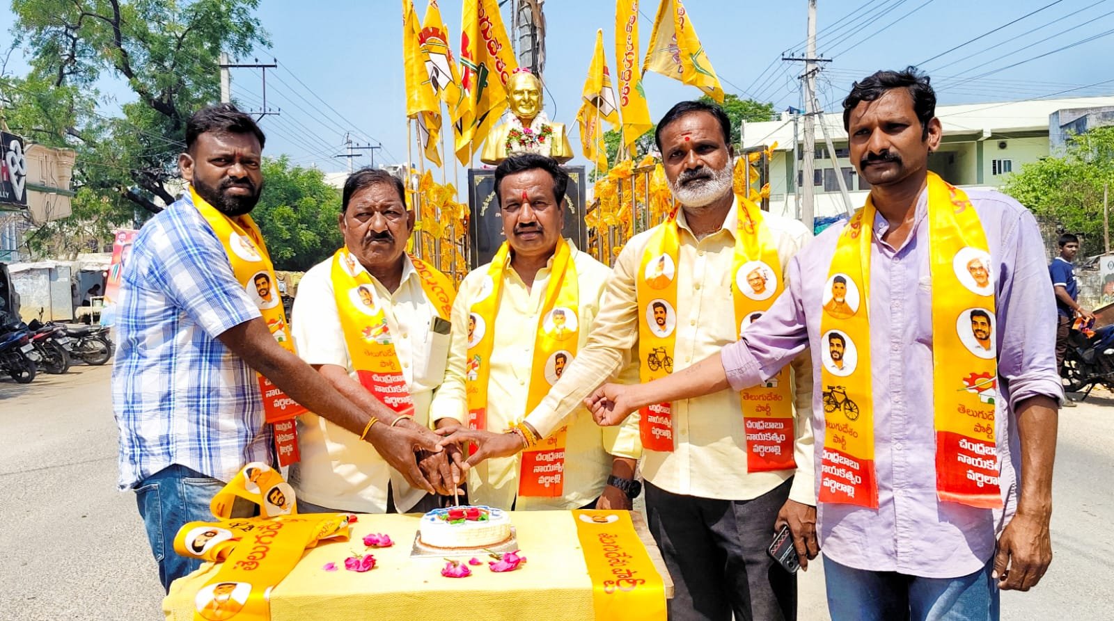 సమాజమే దేవాలయం,ప్రజలే దేవుళ్లు అనే నినాదంతో నందమూరి తారక రామారావు చేతుల మీదుగా ఆవిర్భవించిన తెలుగుదేశం పార్టీది ఘనమైన చరిత్ర అని టీడీపీ జిల్లా అద్యక్షుడు అక్కపాక తిరుపతి అన్నారు.టీడీపీ 44వ ఆవిర్భావ దినోత్సవం సందర్భంగా ఆదివారం పెద్దపల్లి జిల్లా కేంద్రంలోని అయ్యప్పస్వామి దేవాలయం వద్దగల ఎన్టీఆర్ విగ్రహానికి తిరుపతి పూలమాలలు వేసి నివాళులర్పించారు.అనంతరం టీడీపీ కార్యాలయం వద్డ తెలుగుదేశం పార్టీ 44వ ఆవిర్భావ దినోత్సవ వేడుకలను ఘనంగా నిర్వహించారు.ఈ సందర్బంగా జిల్లా అద్యక్షుడు అక్కపాక తిరుపతి పలువురు పార్టీ నాయకులతో కలిసి నందమూరి తారక రామారావు చిత్రపటానికి పూలమాల వేసి నివాళులర్పించారు.అనంతరం పార్టీ జెండా ఎగురవేసి,కేక్ కట్ చేసి సంబరాలు జరుపుకున్నారు.ఈ సందర్భంగా అక్కపాక తిరుపతి మాట్లాడుతూ దేశ రాజకీయ రంగంలోకి తారాజువ్వలా దూసుకువచ్చి తెలుగుదేశం పార్టీని స్థాపించి 9 నెలల్లోనే తెలుగు బావుటాను ఎగురవేసిన యుగపురుషుడు నందమూరి అని, పేదల జీవితాలకు పెన్నిధిగా, అన్నదాతలకు ఆశాదీపంగా, ఆడపడుచులకు అన్నగా,బడుగుల సంక్షేమానికి వినూత్న పథకాలెన్నో తెచ్చిందన్నారు. తెలుగుజాతికి మార్గదర్శం చేసి,రాష్ట్ర ప్రగతి, ప్రజారంజక పాలన చేసిన మహానాయకుడు ఎన్టీఆర్, నీతివంతమైన రాజకీయాలతో దేశంలోనే ప్రాంతీయ పార్టీ లకు సముచిత గౌరవాన్ని,భాగస్వామ్యాన్ని కల్పించిన ఏకైక పార్టీ తెలుగుదేశం అని అన్నారు.