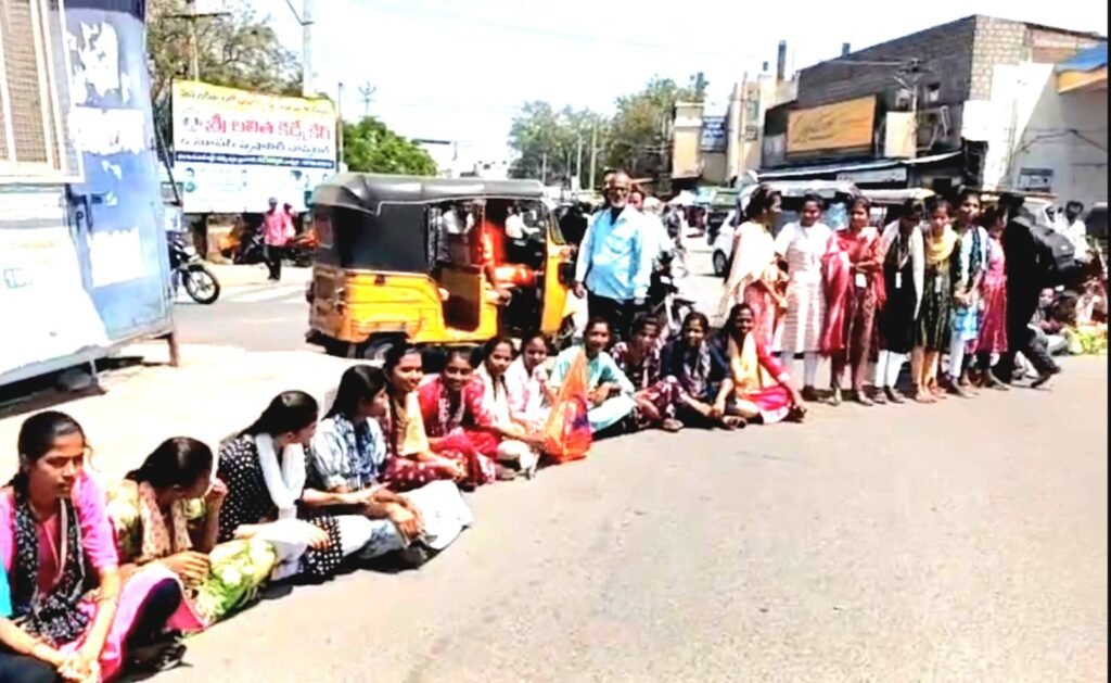 స్కాలర్షిప్ కోసం కొత్త బస్టాండ్ వద్ద ధర్నా