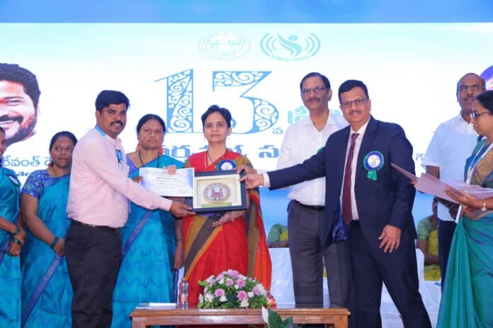ఆర్థిక సంవత్సరం 2024-25 స్త్రీనిది కార్యక్రమాలలో జిల్లా రీజినల్ మేనేజర్ రాష్ట్రం లోనే ప్రథమ స్థానంలో నిలిచిన యం.రాం నారాయణ (పాత సిరిసిల్ల) ని, సెర్ప్ సిబ్బంది సీసీ లలో రాష్ట్రం లోనే ప్రథమ స్థానంలో నిలిచిన కే.పురుషోత్తం ఇబ్రాహీంపట్నం మండలం, (పాత మెట్ పల్లి) ని, స్త్రీనిది సిబ్బందిలో అసిస్టెంట్ మేనేజర్ లలో రాష్ట్రం లోనే తృతీయ స్థానంలో నిలిచిన వి.గంగజల ని గ్రామీణాభివృద్ధి శాఖ మాత్యులు ధనసరి అనసూయ మరియు సెర్ప్ సిఈఓ. దివ్య దేవరాజన్ ఐ ఏ ఎస్, స్త్రీనిది యం డి విద్యాసాగర్ రెడ్డి, డిప్యూటీ యం డి శ్రీనాథ్ ద్వారా స్త్రీనిది 13 వ సర్వసభ్య సమావేశం వేదిక గా ప్రోఫెసర్ జయశంకర్ విశ్వ విద్యాలయం లో నిర్వహించిన కార్యక్రమం లో వారిని శాలువ, జ్ఞపీక మరియు ప్రశంసపత్రం తో సత్కరిoచారు.ఈ సందర్బంగా జిల్లా గ్రామీణభివృద్ధి శాఖ అధికారి యం. రఘువరణ్, అదనపు ప్రాజెక్టు ఆధికారి పి. సునీత, జిల్లా డిపియo లు రమేష్, నారాయణ, నాగేశ్వర్ రావు, చక్రవర్తి, గంగాధర్, శ్రీనివాస్, దాస్, సత్యనారాయణ, తదితరులు అభినందనలు తెలిపారు.