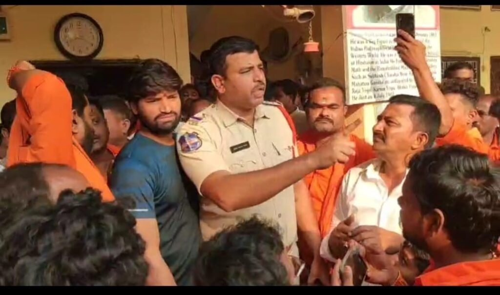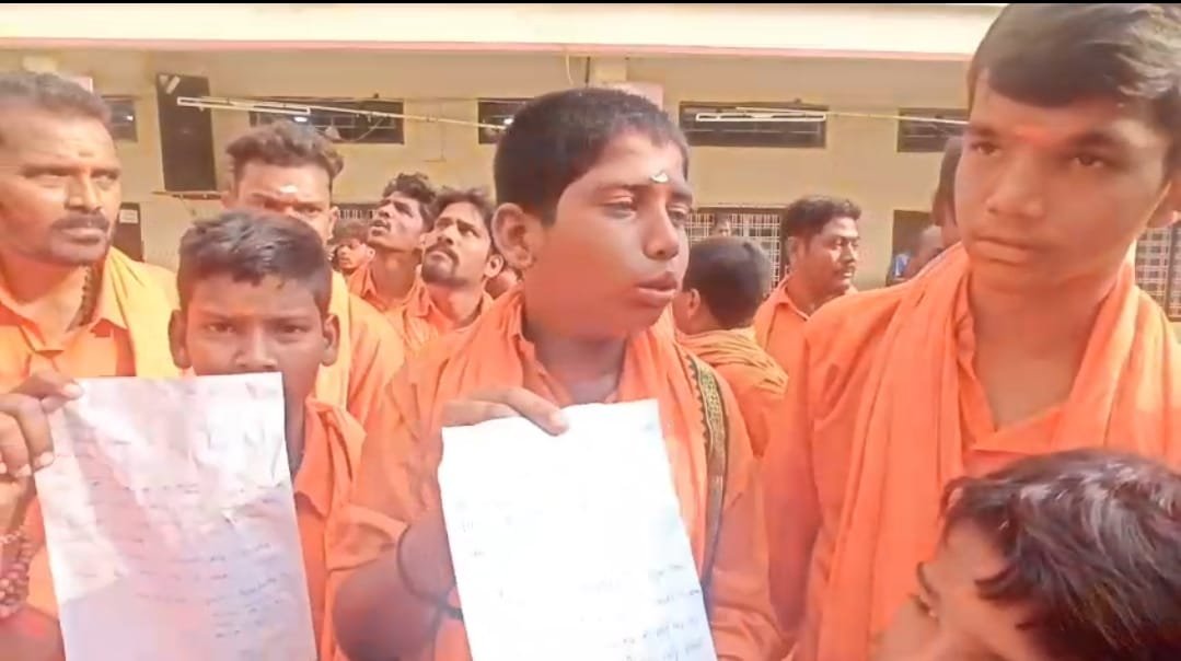 జగిత్యాల జిల్లా మెట్పల్లి పట్టణంలో హనుమాన్ మాల వేసుకున్న విద్యార్థులను పాఠశాలలోకి అనుమతించకపోవడంతో ఉద్రిక్త పరిస్థితులు నెలకొన్నాయి. పట్టణానికి చెందిన నిఖిల్ భరత్ ప్రైవేట్ పాఠశాలలో ఈ ఘటన చోటుచేసుకుంది. హనుమాన్ దీక్ష తీసుకున్న ఐదుగురు విద్యార్థులను పాఠశాల యాజమాన్యం తరగతులకు అనుమతించకపోవడంతో వివాదం చెలరేగింది.ఈ విషయం తెలుసుకున్న హనుమాన్ మాలధారులు పెద్ద ఎత్తున పాఠశాల వద్దకు చేరుకొని యాజమాన్యానికి వ్యతిరేకంగా నినాదాలు చేశారు. విద్యార్థుల మతాచారాలను గౌరవించకుండా ఇలా ప్రవర్తించడం సరైంది కాదని వారు ఆగ్రహం వ్యక్తం చేశారు. కొంతసేపు పాఠశాల ముందు ఉద్రిక్త వాతావరణం నెలకొంది.ఈ సందర్భంగా విద్యార్థులు మాట్లాడుతూ హనుమాన్ దీక్ష కొనసాగుతున్న సమయంలో పాఠశాలకు రావొద్దని చెప్పి, దీక్ష విరమణ అయ్యేవరకు 21 రోజుల పాటు సెలవు తీసుకోవాలని బలవంతంగా లీవ్ లెటర్ రాయించుకున్నారని ఆరోపించారు.