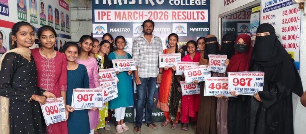 ఇంటర్ ద్వితీయ సంవత్సరం ఫలితాలు: రెండో సంవత్సరంలోనూ మాస్ట్రో విద్యార్థులు తమ విజయ పరంపరను కొనసాగించారు సి.ఇ.సి లో ఎంభేరి జాగృతి: 990/1000 మార్కులతో స్టేట్ ఫస్ట్ సాధించింది.బై.పి.సి లో ఉజ్మ : 994/1000 (స్టేట్ సెకండ్), ఎం.పి.సి లో సుంకరి శృతి: 992/1000, ఎం.పి.సి లో గరిట్యాల దైవకృప :992/1000, ఈ ఘన విజయంపై మాస్ట్రో విద్యాసంస్థ ప్రిన్సిపాల్ అధ్యాపక బృందం స్పందిస్తూ.. తమ విద్యార్థుల అంకితభావం, అనుభవజ్ఞులైన లెక్చరర్ల సరైన మార్గదర్శకత్వమే ఈ విజయానికి మూలమని పేర్కొన్నారు.”మా విద్యాసంస్థలో ప్రతి విద్యార్థిపై ప్రత్యేక శ్రద్ధ వహించడం మరియు ఒత్తిడి లేని విద్యా విధానాన్ని అందించడం వల్లే నేడు రాష్ట్ర స్థాయి ర్యాంకులు సాధించగలిగాము. విజయం సాధించిన విద్యార్థులకు మరియు వారికి వెన్నంటి నిలిచిన తల్లిదండ్రులకు మా అభినందనలు తెలిపారు.