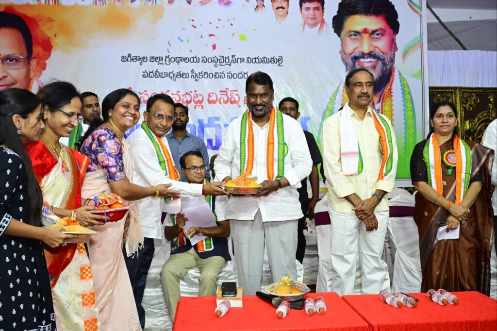 జగిత్యాల జిల్లాలో పనిచేస్తున్న ప్రతి కార్యకర్తకు సరైన సమయంలో గుర్తింపు లభిస్తుందని ఎవరు నిరాశ పడవద్దని మంత్రి అన్నారు. రాష్ట్రంలో రేవంత్ పాలన పోవాలి.. మార్పు రావాలి అని జీవన్ రెడ్డి నినాదం ఎత్తుకున్నారని ఎందుకు మార్పు రావాలి అని మంత్రి ప్రశ్నించారు. రాష్ట్రంలో సన్నబియ్యం పథకం అమలు చేస్తున్నందుకు మార్పు రావాలా.. ? అర్హులకు రేషన్ కార్డు లు అందించినందుకు మార్పు రావాలా..? నిరుపేదలకు ఇందిరమ్మ ఇళ్లు ఇచ్చినందుకు మార్పు రావాలా.. ? మహిళలకు ఉచిత బస్సు సౌకర్యం కల్పించినందుకు మార్పు రావాలా ..? అని జీవన్ రెడ్డిని మంత్రి అడ్లూరి ప్రశ్నించారు. కాంగ్రెస్ పార్టీ ఎన్నికల మేనిఫెస్టోలో ఇచ్చిన ప్రతి హామీని నెరవేర్చుతామని రానున్న రోజుల్లో నిత్యం ప్రజల మధ్య ఉంటూ రాష్ట్రంలో మరో మారు అధికారంలోకి వస్తామని మంత్రి లక్ష్మణ్ కుమార్ అన్నారు. 2029లో సైతం రాష్ట్రంలో కాంగ్రెస్ పార్టీ అధికారంలోకి వస్తుందని రేవంత్ రెడ్డి మంత్రి అడ్లూరి స్పష్టం చేశారు. కొత్తగా గ్రంధాలయ సంస్థ చైర్మన్ గా ఎన్నికైన సంగనభట్ల దినేష్ కు మంత్రి శుభాకాంక్షలు తెలిపారు. కార్యక్రమంలో ప్రభుత్వ విఫ్ ఆది శ్రీనివాస్, జగిత్యాల ఎమ్మెల్యే డాక్టర్ సంజయ్ కుమార్, జగిత్యాల మున్సిపల్ చైర్మన్ సమిండ్ల వాణి, దుద్దిళ్ల శ్రీను బాబుతో పాటు జగిత్యాల జిల్లాకు చెందిన పలువురు ప్రజాప్రతినిధులు కాంగ్రెస్ పార్టీ కార్యకర్తలు పెద్ద సంఖ్యలు పాల్గొన్నారు.
