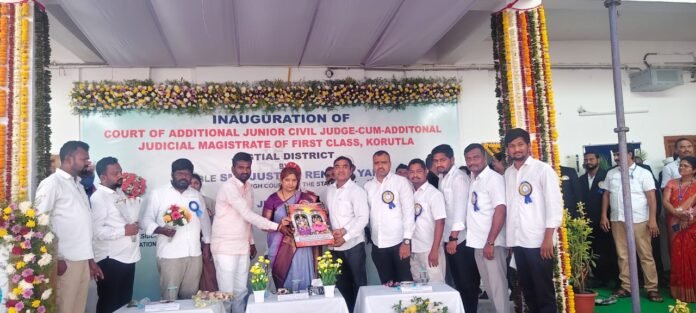 ధర్మపురి బార్ అసోసియేషన్ న్యాయవాదులు శనివారం కోరుట్లలో అడిషనల్ జ్యూడీషియల్ మేజిస్ట్రేట్ కోర్ట్ ప్రారంభోత్సవ కార్యక్రమనికి ముఖ్య అతిథిగా విచ్చేసిన హైకోర్టు న్యాయమూర్తి జస్టిస్ రేణుక యారా ని మర్యాద పూర్వకంగా కలసి ధర్మపురి జూనియర్ సివిల్ కోర్టు శాశ్వత భవనo ఏర్పాటు చేయాలని వినతిపత్రం ఇవ్వడం జరిగింది ఈ కార్యక్రమంలో అధ్యక్షులు బందెల రమేష్, ఉపాధ్యక్షులు మామిడల శ్రీకాంత్ కుమార్, జనరల్ సెక్రటరీ రామడుగు రాజేష్, ఎక్స్ అఫిసియో మెంబర్ అలుక వినోద్ కుమార్ ,ట్రెస్సరర్ గూడ జితేందర్ రెడ్డి, జాయింట్ సెక్రటరీ ఒరగంటి చంద్రశేఖర్, స్పోర్ట్స్ అండ్ కల్చరల్ సెక్రటరీ కస్తూరి శరత్ కుమార్, సీనియర్ ఈసి మెంబర్ రౌతు రాజేష్, మరియు న్యాయవాదులు బత్తినీ ఇంద్రకరణ్, జాజల రమేష్ లు పాల్గొన్నారు