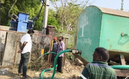 ఎండలు తీవ్రమవుతున్న నేపథ్యంలో ప్రజలకు విద్యుత్ ఓల్టేజీ సమస్యలు తలెత్తకుండా స్థానిక కౌన్సిలర్ తెడ్డు శ్రీజ విజయ్ ముందస్తు జాగ్రత్తలు చేపట్టారు. వేసవి తాపానికి ట్రాన్స్ఫార్మర్ల ఎర్తింగ్ వ్యవస్థ డ్రై కాకుండా, విద్యుత్ సరఫరా సాధారణ స్థితిలో ఉండేలా చూసేందుకు ప్రత్యేక చొరవ తీసుకున్నారు.ఇందులో భాగంగా, విద్యుత్ సిబ్బందితో కలిసి ఆయా ప్రాంతాల్లోని ట్రాన్స్ఫార్మర్ల వద్ద వాటర్ ట్యాంకర్ ద్వారా నీరు పట్టించారు. ఎర్తింగ్ పిట్లు తేమగా ఉండటం వల్ల ఓల్టేజీ హెచ్చుతగ్గులు లేకుండా నిరంతరాయంగా నాణ్యమైన విద్యుత్ సరఫరా జరుగుతుందని తెలిపారు. ప్రజలకు ఎటువంటి ఇబ్బందులు కలగకుండా పర్యవేక్షిస్తున్నట్లు పేర్కొన్నారు.ఈ కార్యక్రమంలో విద్యుత్ సరఫరా సిబ్బంది రమేష్, ప్రశాంత్ మరియు ఇతర సిబ్బంది పాల్గొన్నారు. కౌన్సిలర్ తీసుకున్న ఈ ముందస్తు చర్య పట్ల వార్డు ప్రజలు హర్షం వ్యక్తం చేస్తున్నారు.