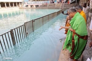 తిరుపతి సప్తగిరుల్లో వెలసిన పవిత్ర క్షేత్రమైన శ్రీ కామాక్షి సమేత శ్రీ కపిలేశ్వరస్వామి దేవాలయంలో ప్రముఖ ఆధ్యాత్మిక వేత్త బ్రహ్మశ్రీ చాగంటి కోటేశ్వరరావు గారు బుధవారం స్వామివారిని దర్శించుకుని ప్రత్యేక పూజలు నిర్వహించారు.ఈ సందర్భంగా ఆయన మీడియాతో మాట్లాడుతూ, సప్తగిరులలో అత్యంత పుణ్యప్రదమైన కపిలతీర్థంలో స్నానం చేయడం వల్ల దేవతలతో పాటు పితృదేవతలు సంతోషిస్తారని పురాణాలు తెలియజేస్తున్నాయని పేర్కొన్నారు.