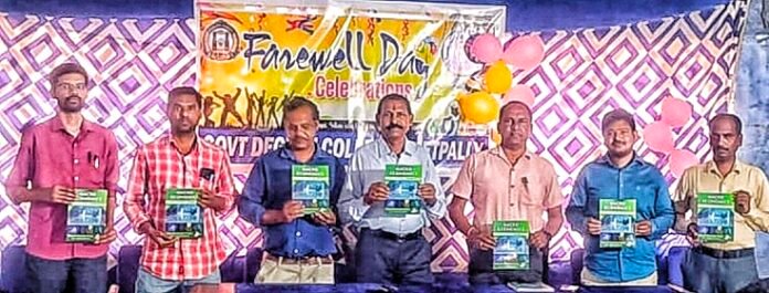 జగిత్యాల జిల్లా మెట్ పల్లి పట్టణంలోని ప్రభుత్వ డిగ్రీ కళాశాలలో గురువారం జరిగిన వీడ్కోలు సమావేశంలో బీ.ఏ ప్రథమ సంవత్సరం “రెండవ సెమిస్టర్ కు సంబంధించిన స్థూల అర్థ శాస్త్రం” అనే పుస్తకాన్ని ఆ కళాశాల ప్రిన్సిపాల్ డాక్టర్ కే.వేంకయ్య అధ్వర్యంలో కళాశాల సిబ్బంది మరియు విద్యార్థులు ఆవిష్కరించారు.ఈ సందర్భంగా ప్రిన్సిపాల్ మాట్లాడుతూ, బీ.ఏ రెండవ సెమిస్టర్ చదువుతున్న విద్యార్థులకు ఈ పుస్తకం ఇంగ్లీష్ మీడియం విద్యార్థులకు ఎంతో ఉపయోగపడుతుందని అన్నారు. నల్గొండ ఎకనామిక్స్ ఫోరం చైర్మన్ డాక్టర్ మీనయ్య నేతృత్వంలో ఫోరం సభ్యులు ఈ పుస్తకాన్ని చాలా చక్కగా రచించారని ఆయన గుర్తు చేశారు. “స్థూల అర్థ శాస్త్రం – ఉపోద్ఘాతం” అనే యూనిట్ ను రచించడం తనకు ఎంతో సంతోషంగా ఉందని, అందుకు చైర్మన్ మీనయ్యకు ప్రిన్సిపాల్ డాక్టర్ కే. వేంకయ్య కృతజ్ఞతలు తెలిపారు. ఈ కార్యక్రమంలో కళాశాల వైస్ ప్రిన్సిపాల్ తొంటి దేవన్న, కళాశాల అకాడమిక్ కో-ఆర్డినేటర్ బిల్ల రాజేందర్, లెక్చరర్లు అంజయ్య, శ్రీకాంత్, సత్య శోధన్, దశరథం, బోధనేతర సిబ్బంది, విద్యార్థినీ విద్యార్థులు తదితరులు పాల్గొన్నారు.