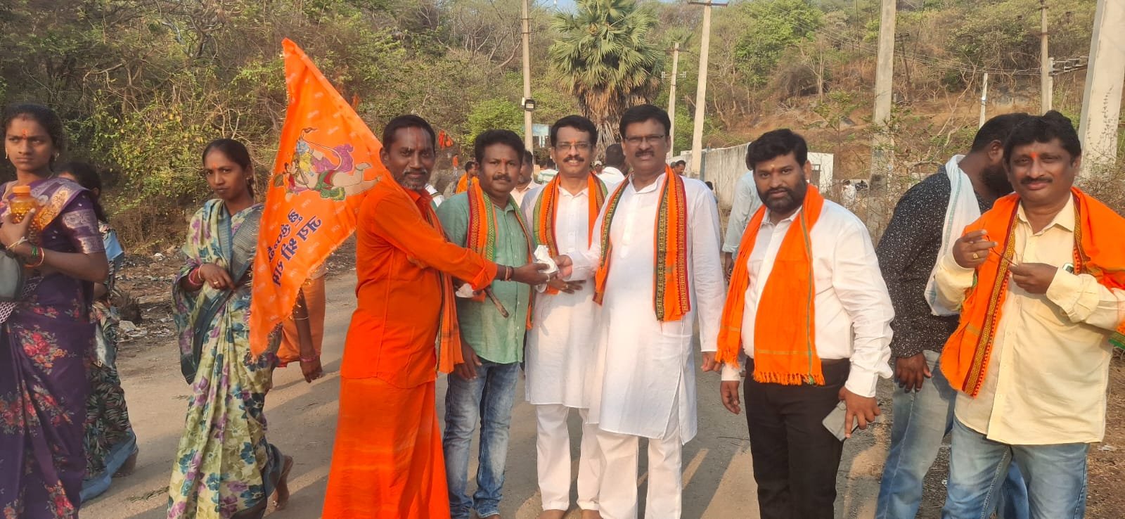 గిరిప్రదక్షిణ మధ్యలో జగిత్యాల జిల్లా విద్యాశాఖాధికారికి రాష్ట్రీయ ఉపాధ్యాయ పండిత పరిషత్ జగిత్యాల జిల్లా శాఖా అధ్యక్షులు వేల్పుల స్వామియాదవ్ శ్రీ ఆంజనేయ స్వామి లడ్డూ ప్రసాదం అందజేసి శ్రీహనుమాన్ జయంతి శుభాకాంక్షలు తెలిపారు. ఈ సందర్బంగా వారు మాట్లాడుతూ గిరిప్రదక్షిణ, పాదయాత్రల వలన ఆధ్యాత్మిక భావన పెరగడంతో పాటు, స్వామివారి అనుగ్రహంతో సకల సత్ సంకల్పాలు నెరవేరుతాయని, ఆరోగ్యపరంగా కూడా ఎంతో శ్రేయోదాయకమని అన్నారు. ఈ కార్యక్రమంలో ఎస్.వో చంద్రశేఖర్ రెడ్డి, రికగ్నైజ్డ్ ఉపాధ్యాయ పండిత పరిషత్ జగిత్యాల జిల్లా శాఖ అధ్యక్షులు వేల్పుల స్వామి యాదవ్, టీజీయూఎస్ జిల్లా అధ్యక్షులు నూనావత్ రాజు, రామిడి సురేందర్, గుండేటి రాకేష్ వేలాది మంది భక్తులు తదితరులు పాల్గొన్నారు.